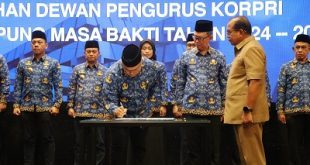Medioker.Id- Sekretaris Daerah Provinsi Lampung Fahrizal Darminto dikukuhkan sebagai Ketua Dewan Pengurus Korps Pegawai Republik Indonesia (Korpri) Provinsi Lampung Masa Bakti 2024-2029 oleh Ketua Departemen Penelitian dan Pengkajian DP Korpri Nasional Oni Bibin Bintoro di Ballroom Hotel Novotel, Bandarlampung, Rabu (24/7/2024). Pengukuhan disaksikan dengan disaksikan langsung oleh Pj. Gubernur Lampung Samsudin. Dalam periode kedua sebagai Ketua DP Korpri tersebut, Sekdaprov …