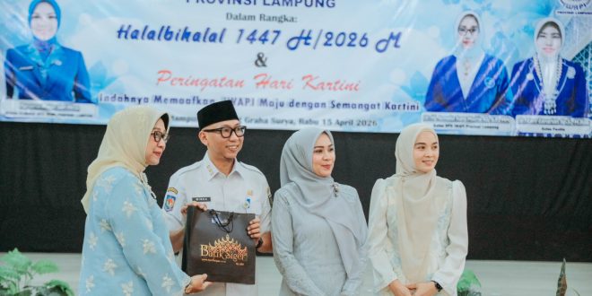 BANDARLAMPUNG , (Medioker.id) – Gubernur Lampung Rahmat Mirzani Djausal menghadiri Halalbihalal Ikatan Wanita Pengusaha Indonesia (Iwapi) Provinsi Lampung yang dirangkaikan dengan Peringatan Hari Kartini 2026, di Gedung Graha Surya, Bandar Lampung, Rabu (15/4/2026).