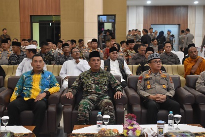 Medioker.Id- Kepala Staf Korem 043/Gatam Kolonel Inf Enjang, S.I.P., M.Han., menghadiri doa lintas agama dalam rangka Hari Bhayangkara Ke-78 Tahun 2024, di GSG Presisi Polda Lampung Jl. Terusan Ryacudu, Way Hui Kecamatan Jati Agung Kabupaten Lampung Selatan. Jum’at (28/06/2024).