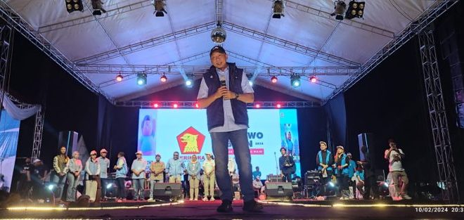 Ajakan itu disampaikan ya saat memberikan orasi di Konser Gebyar Indonesia maju di Lapangan Baruna, Panjang, Bandar Lampung, Sabtu malam, (10/02/2024).