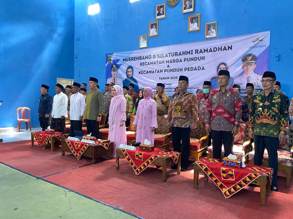 Pesawaran (Medioker.id) – Pemerintah Kabupaten Pesawaran menggelar Musyawarah Perencanaan Pembangunan (Musrenbang) tingkat kecamatan Marga Punduh dan Punduh Pedada sekaligus Silaturahmi Ramadan di GSG Balai Desa Kampung Baru, Kecamatan Marga Punduh, Kamis (13/3/2025). Kegiatan ini dihadiri langsung oleh Bupati Pesawaran Dendi Ramadhona, beserta jajaran, para kepala desa, serta masyarakat setempat.
