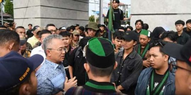 Wakil Ketua III DPRD Lampung, Yozi Rizal Temui Massa Aksi HMI